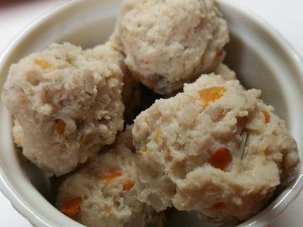手を水でぬらして①をだんご状に丸め、沸騰したお湯で2~3分ゆでます。
