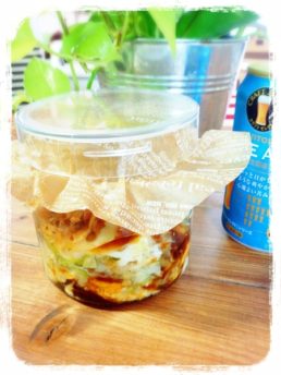 ジャーでヘルシー、キャベツたっぷり広島風お好み焼き! 夜食にもぴったりです♡
