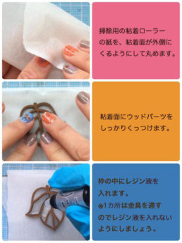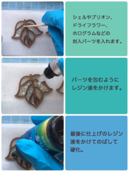 ウッドパーツの内側にレジン液を入れて、デコ