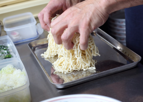 麺のちぢれも大切なポイントで、スープによく太さとともに絶妙なバランスに仕上げる。