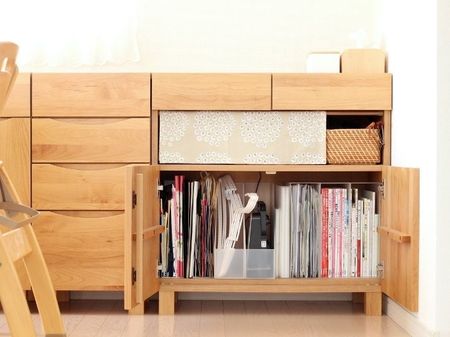 立ち上がりのないこのボックスなら中身を持ち上げずにとり出せるので、書類を入れたり、ブックスタンドがわりに使ったりするのにも便利ですよ♪