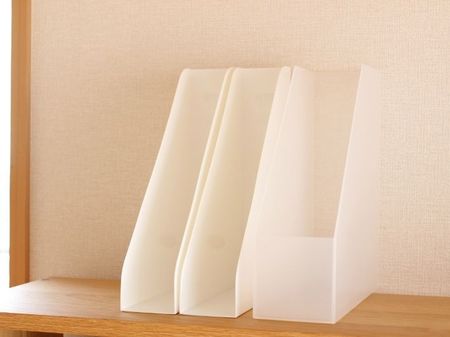 セリアのファイルボックスは、真っ白でシンプルなデザインでありながらひとつ100円というプチプラでそろえられるのもメリット! 前面フラット&幅が狭めで、前面に立ち上がりのあるスタンドファイルボックスとはまた違った使いやすさがあるので、使いたい場所や入れるものに合わせてうまく活用してみてくださいね♪
