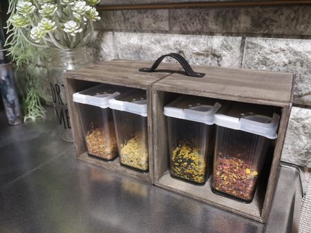 みなさんのご家庭ではリビングのテーブルに調味料を置きっぱなしにしていませんか? わが家では置きっぱなしにしていて子どもにこぼされたことがあり、それ以来、食事のたびにテーブルまで運んでいます。子どもたちが好きなふりかけもキッチンから移動。そのため、簡単に調味料を持ち運びできないかなと考えたのがこれです。子どもでも簡単に持ち運びできます。100円ショップのグッズで簡単に作れますので、よかったら作ってみてください。