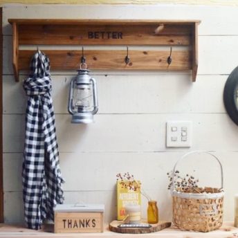 マフラー、バッグ、コートなどを玄関にさっとかけてカッコよく収納できる、便利なハンガーフックシェルフを作りました! DIY初心者さんでも簡単にできるのでぜひ挑戦してみてくださいね!