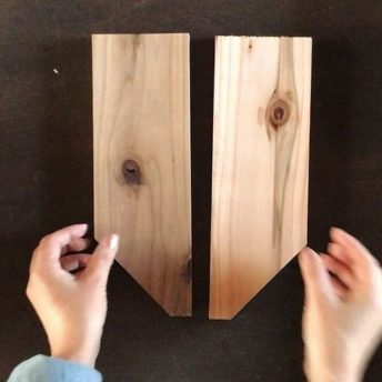 ①側板は2枚とも写真のように片端をのこぎりで斜めにカットします。