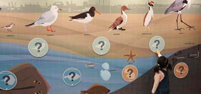 ふなばし三番瀬環境学習館は「知る」「考える」「学ぶ」の3つのゾーンで構成されており、干潟の魅力を体感しながら楽しく学習することができる