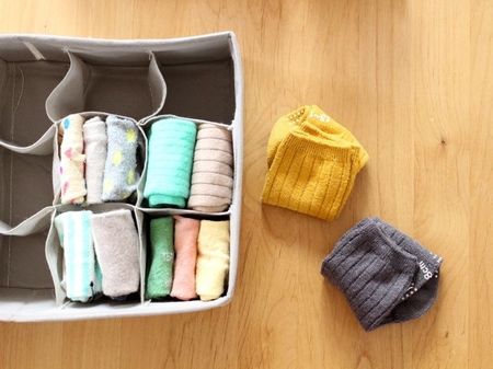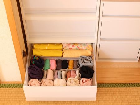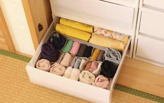 細かい衣類も、仕切りを活用すればいつもキレイな状態をキープ。子ども服はもちろんですが、「夫の靴下や下着がすぐごちゃごちゃになる」という場合にも効果大です! ぜひ試してみてくださいね♪