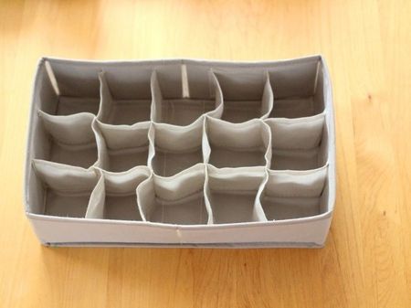 そんな細かい衣類の収納に便利なのが、ニトリで購入した整理ボックス! 8マス・15マス・24マスの3種類があり、入れたいものの大きさに合わせて選べて、お値段も299円(税込)とプチプラなんです♪ 今回は15マスのタイプを使いました。