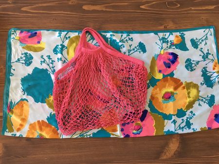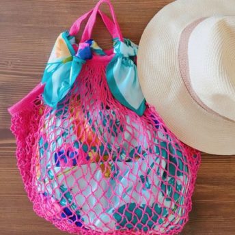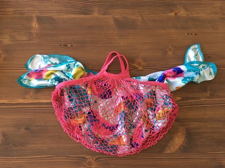 スカーフの活用法を1つご紹介! キャンドゥのネットバッグを使ったかわいいバッグの作り方です。今回はカラフルなものを使いリバーシブルにもなるようにしました!