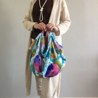 バッグを裏返すとこんな感じに! このときスカーフの裏側が表面にきますので、スカーフ自体がリバーシブルなものか裏側もカラフルなものを選ぶといいです。