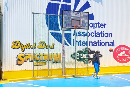 まさに『ビバリーヒルズ高校白書』! 放課後、キャンパス内でバスケを楽しむ登場人物そのものではありませんか。ここが市川市内にあるアミューズメント施設のバスケットコーナーだと誰が信じるでしょう。