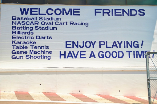 SNSで「大慶園」と検索すると、よく出てくるのがこの壁。人気の撮影スポットでもあるこちらは、バッティングセンターやクレーンゲームなどが入る建物です。アイスクリームやポップコーンを片手に撮影し「♯アメリカ旅行中」とハッシュタグをつけても、これ、バレないかも……?