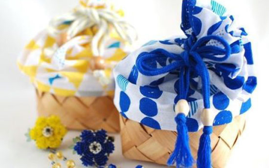 浴衣にぴったりなかごつき巾着が、100円ショップの手ぬぐいとかごで簡単にかわいく作れます。