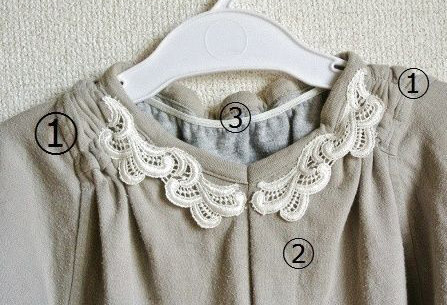 えり元に飾りとしてレースをつけます(これまた母の服に使われていたお古のレースです)。