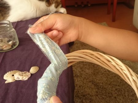 「このままだと、ちょっとさみしくない?」という娘の提案で、追加で家にあったレースリボンを巻いてみました。