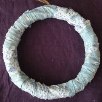 布をねじったり重ねたりしながらくるくると巻き、リースベースのすき間が見えなくなったら、土台の完成です!