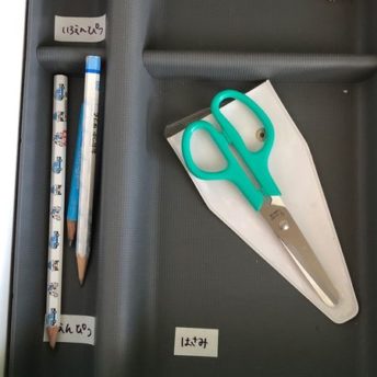 学校では4Bの鉛筆を使用していて、気がつくとがっつり汚れています。掃除が面倒な引き出しの中や細かい部分はこうやって汚れを予防しています。