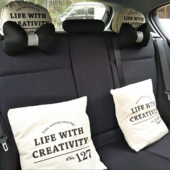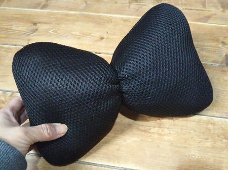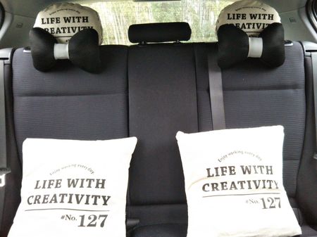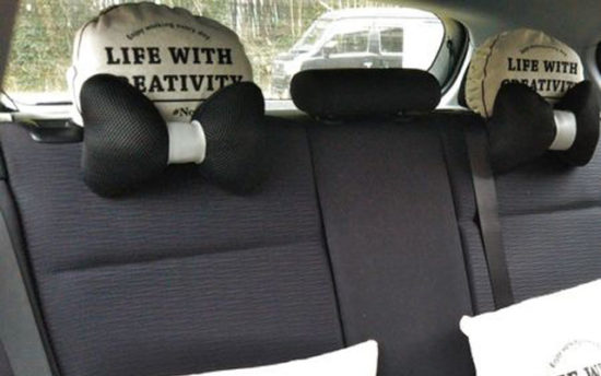100円ショップで見つけたネッククッション。そのままで使うのが味けなかったので、リボン風にアレンジしてみました。シンプルだったネッククッションも、少し手を加えるだけで遊び心のあるカーアイテムになりました♪
