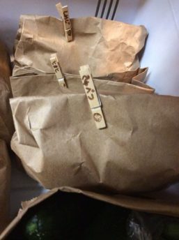 そこで活躍するのが100円ショップの木製クリップ!!! これで野菜を管理します!