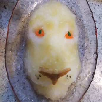 大根おろしでライオンの顔の立体感を出すために、凹凸部分をしっかりつけることがポイントです。