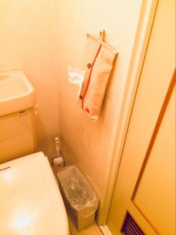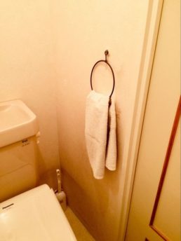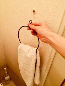 ③タオルハンガーがかかっていた場所に②を吊り下げます