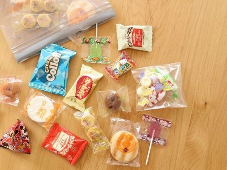 クラフトバッグに入る大きさの小袋のお菓子を用意します。友だち何人かでいろいろな種類のお菓子を購入してシェアすると、中身が毎日違って楽しくなるのでおすすめです♪