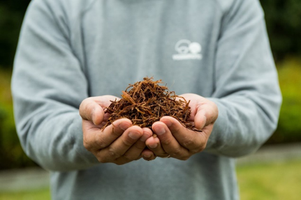 「おいしいマッシュルームを作るために、培地作りにとことんこだわっています。培地は、マッシュルームの種菌を育てるための、まさに母胎ともいえるもの。培地だけでも完成までに約1カ月かかります。芳源マッシュルームでは、有機たい肥や地下水を使用し、発酵を重ねながら栄養たっぷりの培地を作っています。2010年からは、日本で初めてのオランダ式マッシュルーム用培地製造システムも導入しました。こだわりの培地で作られたマッシュルームは栽培中無農薬。うまみがあって、肉厚なのが特徴です」