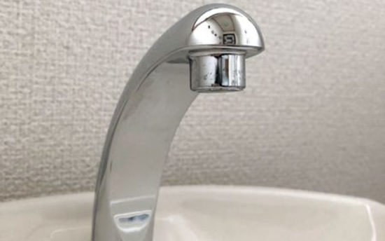 わが家のトイレの手洗い用水栓。石のようにガリガリガチガチにこびりついた……カルキ汚れ? なんだかわからず、思わず絶句。すぐにトイレ用掃除シートで拭いてみたけれど、ビクともせず……。100円ショップでも購入できる、あるものを使って退治してみることに!