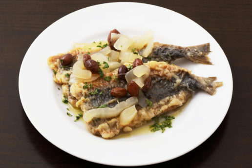 写真はヴェネチアの庶民料理、サルデ・イン・サオール500円。冷蔵庫がない大航海時代の漁師たちが長い船旅生活の中で保存食にしていた一品で、タマネギをたくさん使っているため、ビタミンCの欠乏が原因で起こる壊血病の予防食としても活用されていたとか。