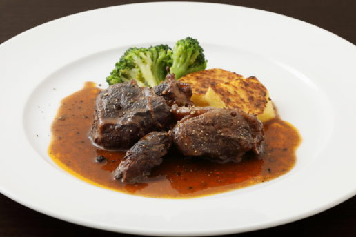 メインにおすすめの一品、中世にフィレンツェのドゥオーモのクーポラ建築に関わった煉瓦職人が生み出したといわれるペポーゾ アッラ フォルナチナ1650円。