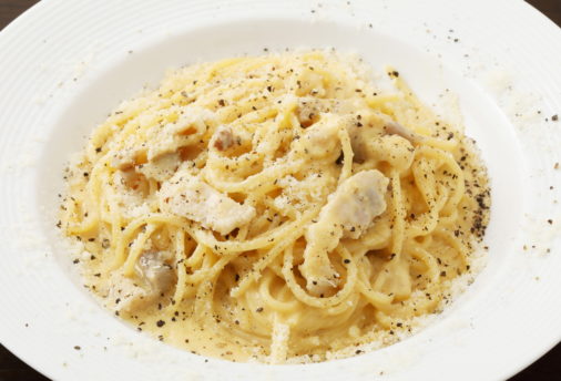ランチのパスタは3種類のなかから好きなものを1品、選べる。写真はローマ風カルボナーラ