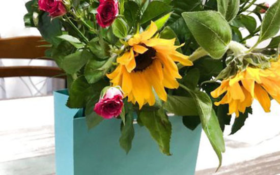 ペットボトルは、花束や使いたい紙袋のサイズに合わせて用意します。大きめのペットボトルを用意し、まとめて花を飾れば奥行きが出ます。小さいペットボトル2〜3個に分けて生けると、横に広がりが出ます。