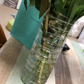 花を飾る、というおしゃれな習慣がないわが家。花瓶もありません。ところが、突然お花をいただく機会が。そのような機会は頻繁にあることではないから、花瓶を用意しても邪魔になりそう……。ということで、自宅にあるもので代用!