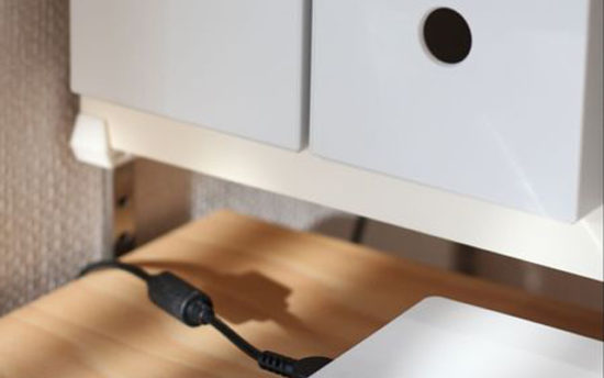 小さい穴なので充電プラグは通りませんが、アダプターが分解できるタイプであれば、パソコンなどのケーブルを収納するボックスとして使用できます。