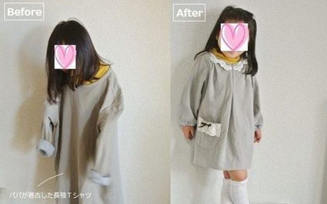 パパのお古Tシャツを型紙なし! の簡単リメイクで娘の作業服に