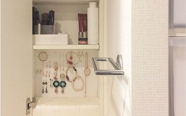 【収納】100円ショップのパネルで鏡裏がアクセサリー収納に変…