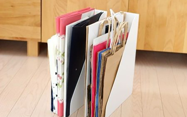 紙袋の収納どうしてる? 100円ショップのファイルボックスで…