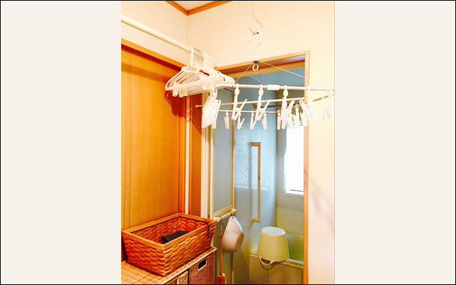 つっぱり棒を使って、洗面所で洗濯が完結♪