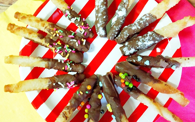 餃子の皮で簡単! 手作りやみつきチョコポッキー♪
