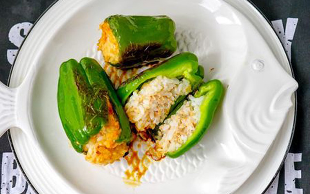 肉巻きならぬ、ピーマンまるごとおにぎりできました。